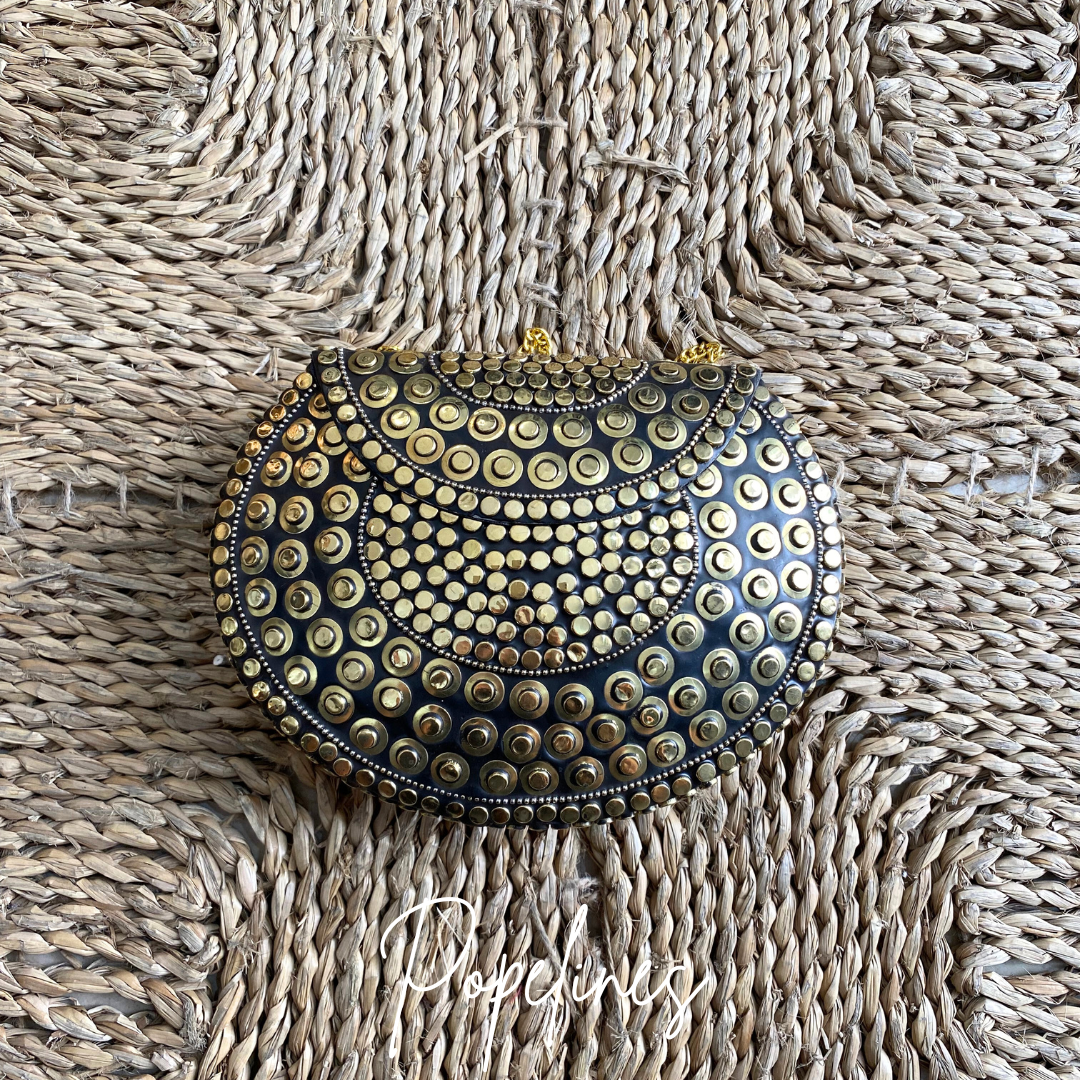 Bolso latón chapitas doradas