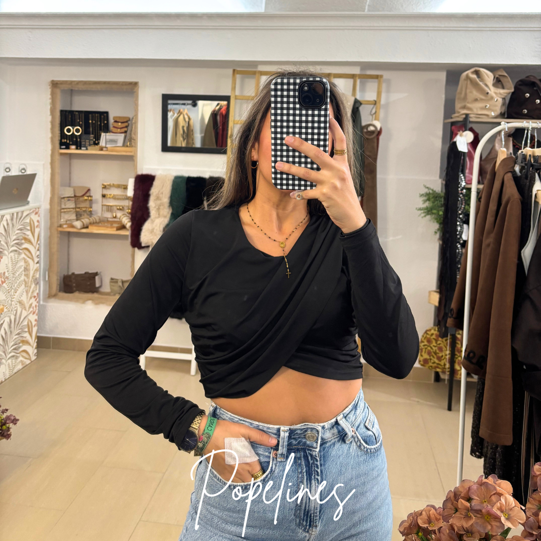 Top corto frunce negro