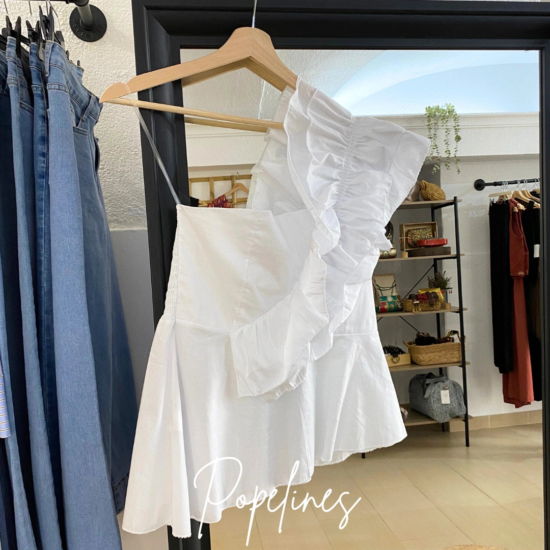Top volante asimétrico blanco
